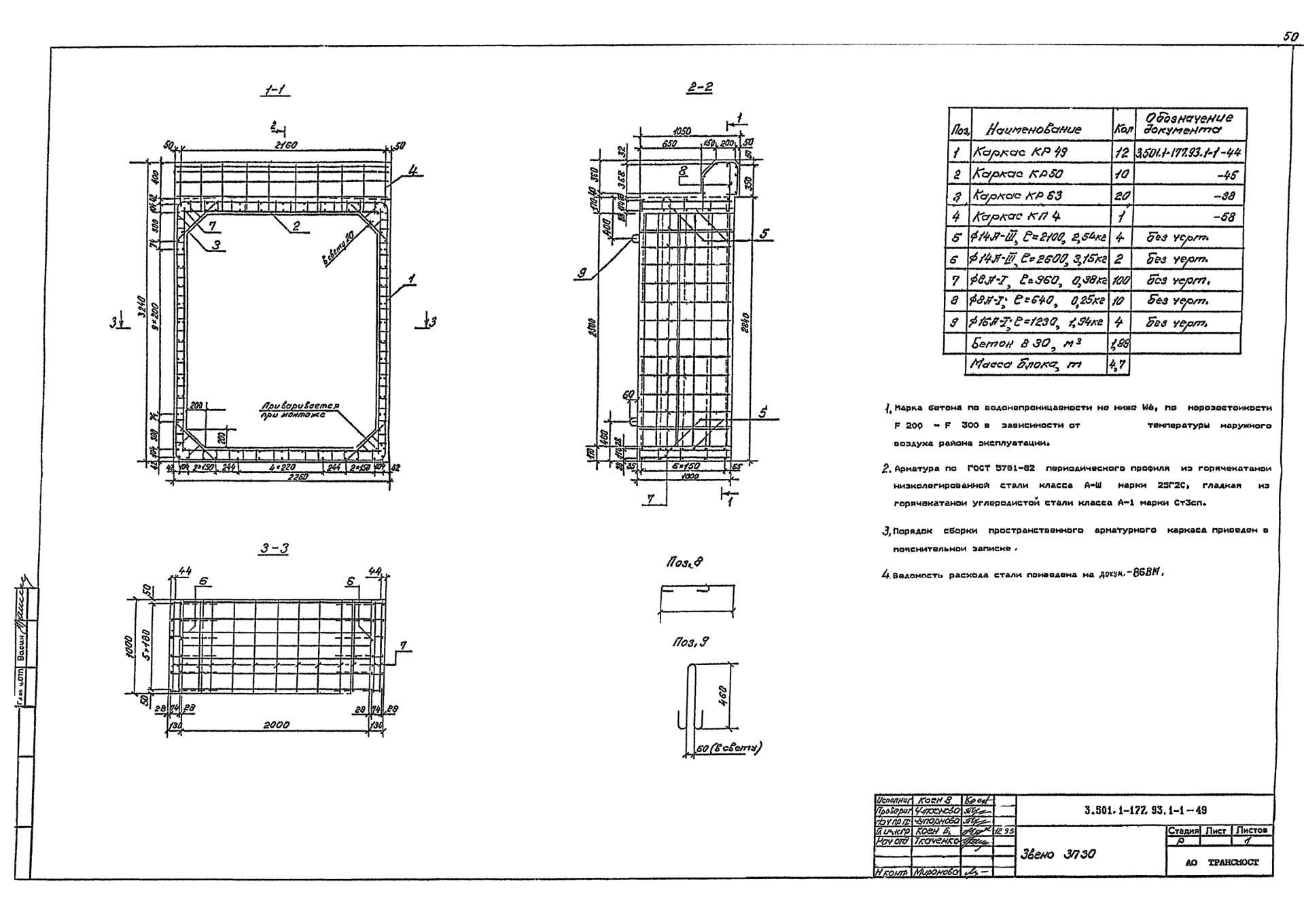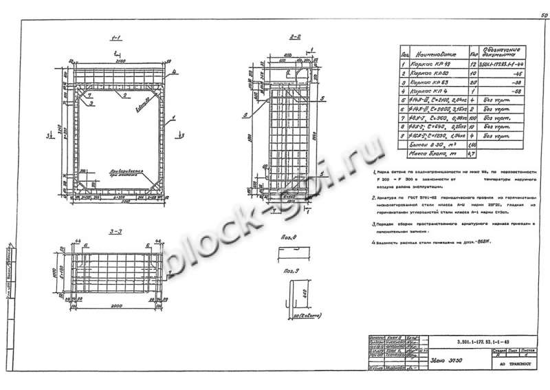 Железобетонные оголовка ЗП 30 для прямоугольных водопропускных труб армируются сетками и каркасами из стержней периодического профиля из углеродистой горячекатаной стали класса А-II. Монтажные петли конструкций изготавливаются из стержневой гладкой горячекатаной арматурной стали класса А-I или периодического профиля класса Ас-II.